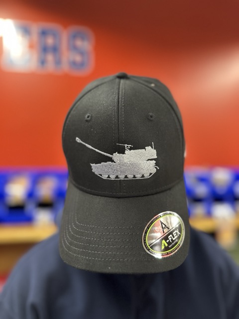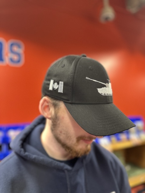 Our new Ball Cap M109, with the Canadian flag on the right and the GUNNERS logo on the left in silver.